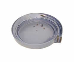 Çanaklar (sarsaklar), 1" iz genişliği ile 18 "çapını ölçer. Titreşimli besleyici çanaklarımızın (sarsaklarımızın) tamamı yalnızca yüksek kaliteli malzemelerden yapılmıştır! Çanaklar (sarsaklar)ve döküm raylar alüminyumdan yapılmıştır, tahliye kapakları paslanmaz çeliktir ve silecek AZ takım çeliğidir ve kaplamalıdır.