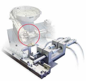 Bu, parçaların bir robot kolun parçayı aldığı bir toplama noktasına teslim edildiği bir statik parça yuvası örneğidir. Bir parça çıkarıldığında, başka bir parça hemen boşluğu doldurur. Doğrusal besleme yolu ve yuva, ilave dayanıklılık ve pas önleme için Nikel Kaplamadır.